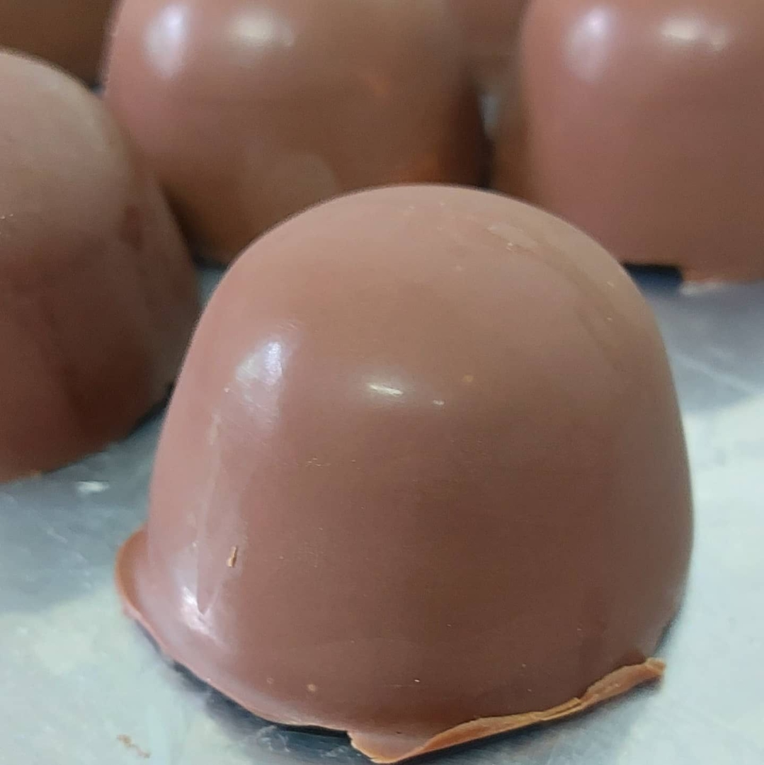Casquinha de chocolate meio amargo e branquinho.