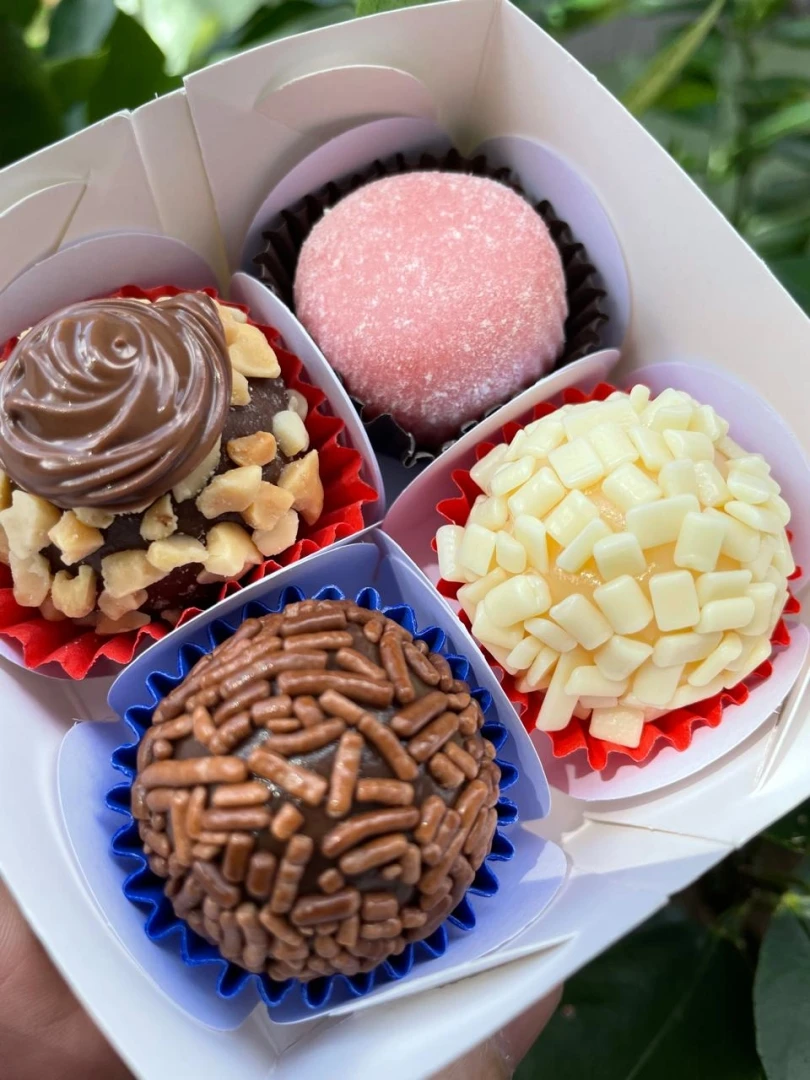 Bolo de chocolate recheado de brigadeiro e branquinho. 2.5kg Serve entre 20 a 25 fatias